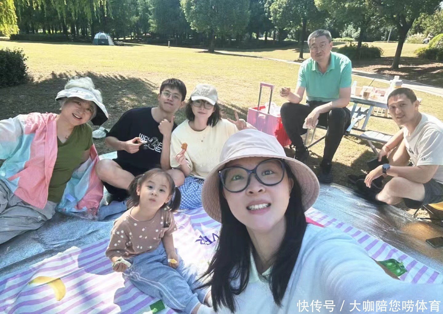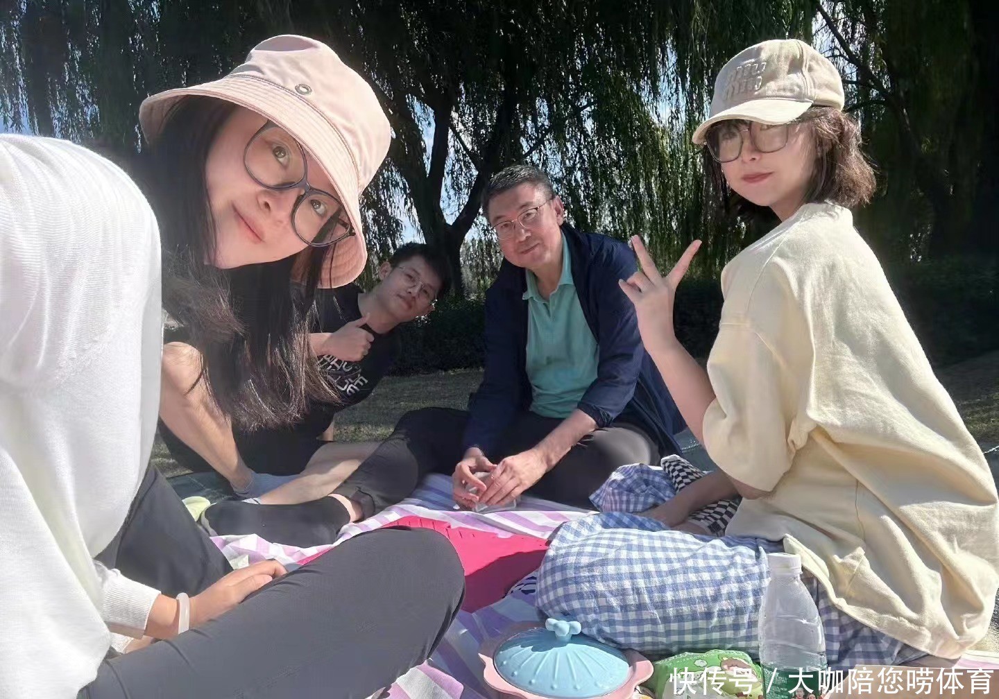 在惠若琪的外交媒体上晒出了多张像片,有两张给东谈主印象深切。其中一张像片上,有五个东谈主现身。惠若琪一家三口以及妹妹和她男一又友。惠若琪一家在镜头的左边。丈夫杨臻博趴在惠若琪的身边。他衣着灰色的短袖,玄色的长裤。双脚跪在地上,腰前倾,右手摁在地上,左手扶着惠若琪的背。惠若琪带着灰色帽子,长发披肩,衣着蓝色的上衣,玄色裤子。右手作出收效的手势,左手扶着儿子。儿子衣着花色的短袖,蓝色的裤子,右手拿着黄色的物品,左手举起伸过火顶作出比心的手势。