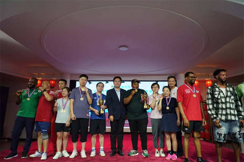 比赛现场脑怒很是热烈,选手们展现出的矜重手艺和千里着心态,取得现场阵阵掌声。经过强横角逐,何伶、王永涛、Ignatius Nkwoh分获男人单打冠亚季军。女单由Chinoma Amajor夺冠,聂小花、陈慧玲分获亚军季军。男人双打中,何伶、王永涛组合夺得冠军,石长强、徐海涛组合和Ignatius Nkwoh、Eke Nwokocha分获二三名。搀和双打何伶、聂小花组合获冠军,石长强、陈慧玲组合获亚军,王永涛、鲁莎组合获季军。